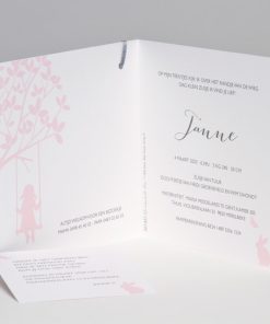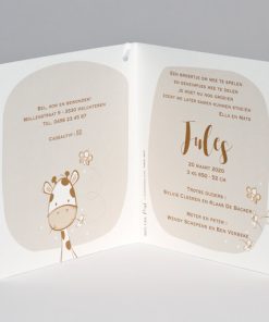 Geboortekaart met beige giraf en gekleurde labels