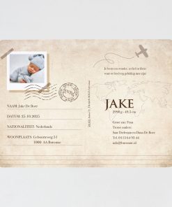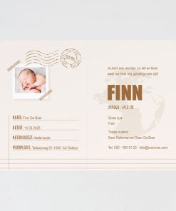Kraft paspoort geboortekaartje met stempel in koperfolie